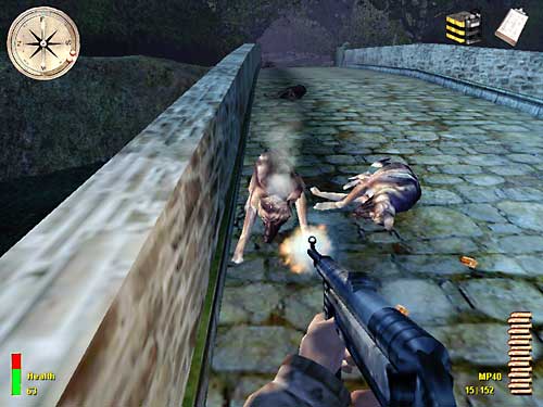 You're going to face a bunch of enemies, carrying rifles, machine guns, grenades and dogs, those dreadful german shepherds, before you can get to the bridge and to Manon's truck. To make conditions worst, the germans and their dogs respawn, i.e., they self-replicate, so you don't have much time to think about the situation.